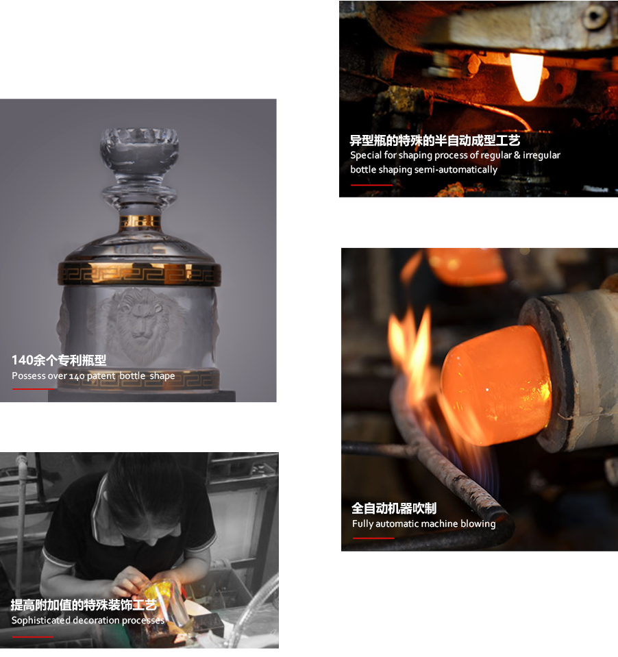 主要與國內五糧液、水井坊、西鳳、劍南春、郎酒,國外伏特加、威士忌、白蘭地、朗姆等名酒企業配套晶質玻璃酒瓶,產品遠銷美國、英國、法國、俄羅斯、歐美等多個國家和地區。